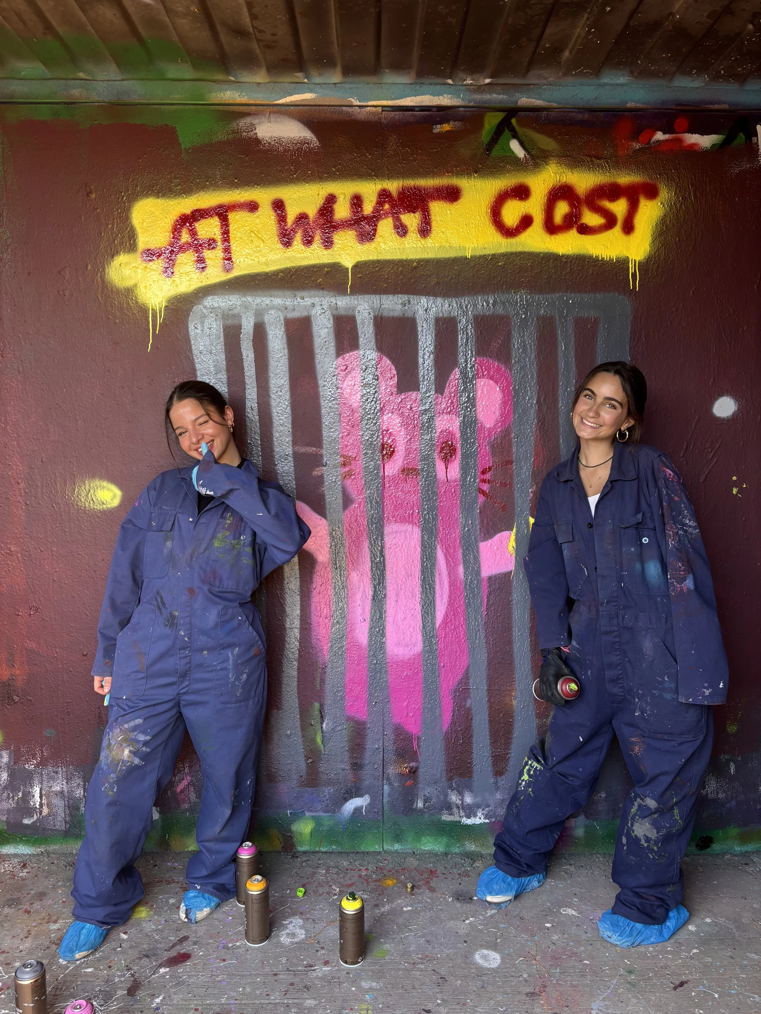 Students then experienced an interactive activity, in which they dressed head to toe in protective clothing before creating their own art by spray painting old shipping containers. They were instructed to “make their mark” on the containers and to work collaboratively with each other to create their piece. Students who attended say they ended the day with a newfound respect and understanding of street art, sparking thoughtful conversations about expression, ownership and public art. Many felt the experience was powerful, and very evocative for their class.